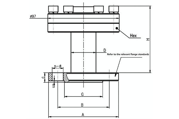 | 97 стандартная диафрагменная печать | Наружный диаметр фланца | Расстояние между отверстиями нитей | Толщина фланца |